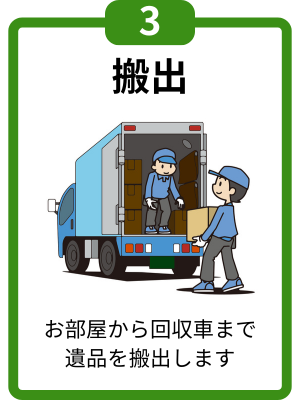 家族や親族が亡くなられた際に、故人が生前使っていたものや身の回りのもの、思い出の物をプロのスタッフがご自宅まで訪問し、家財道具や遺品を整理します。