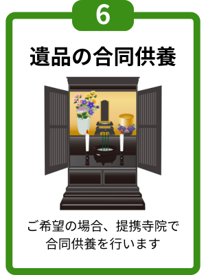 お支払いはこの時点で、現金またはクレジットカードにて承ります。8。遺品の合同供養