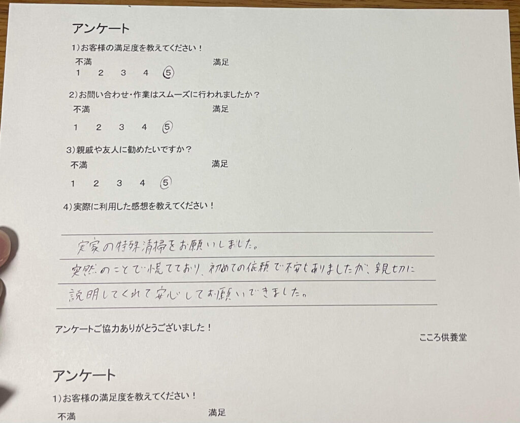 作業もとても丁寧で、こちらの気持ちに配慮しながら進めてくれたのが印象的でした。