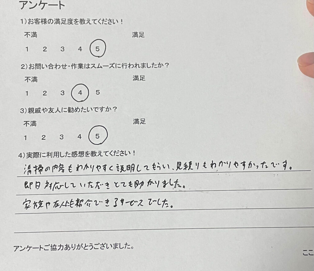 清掃の内容もわかりやすく説明してもらい、見積りもわかりやすかったです。