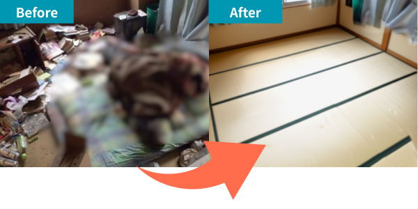 親族が急に亡くなり、発見が遅れたことで部屋の状態がひどく、どうしていいか分からず不安でいっぱいでした。